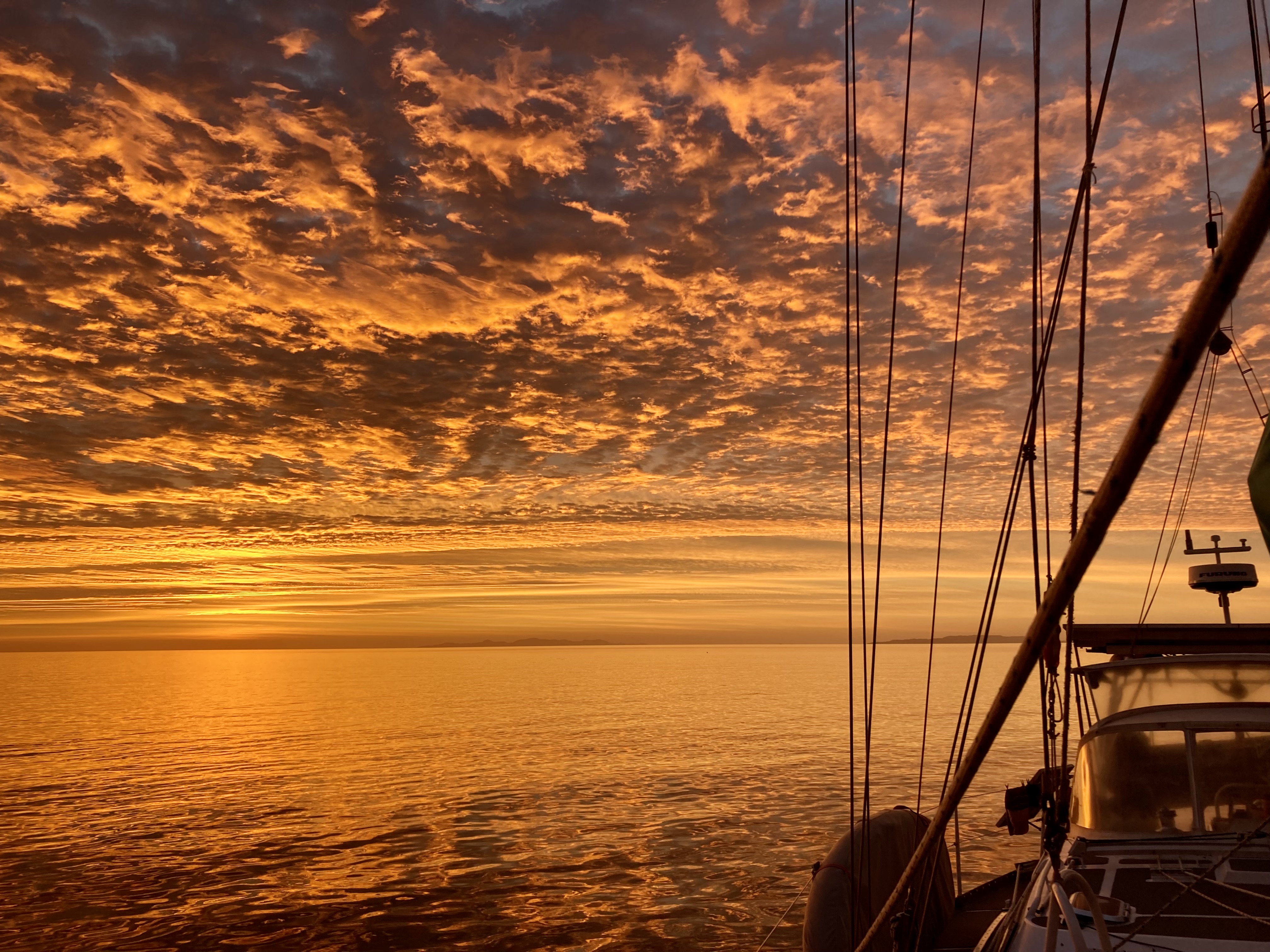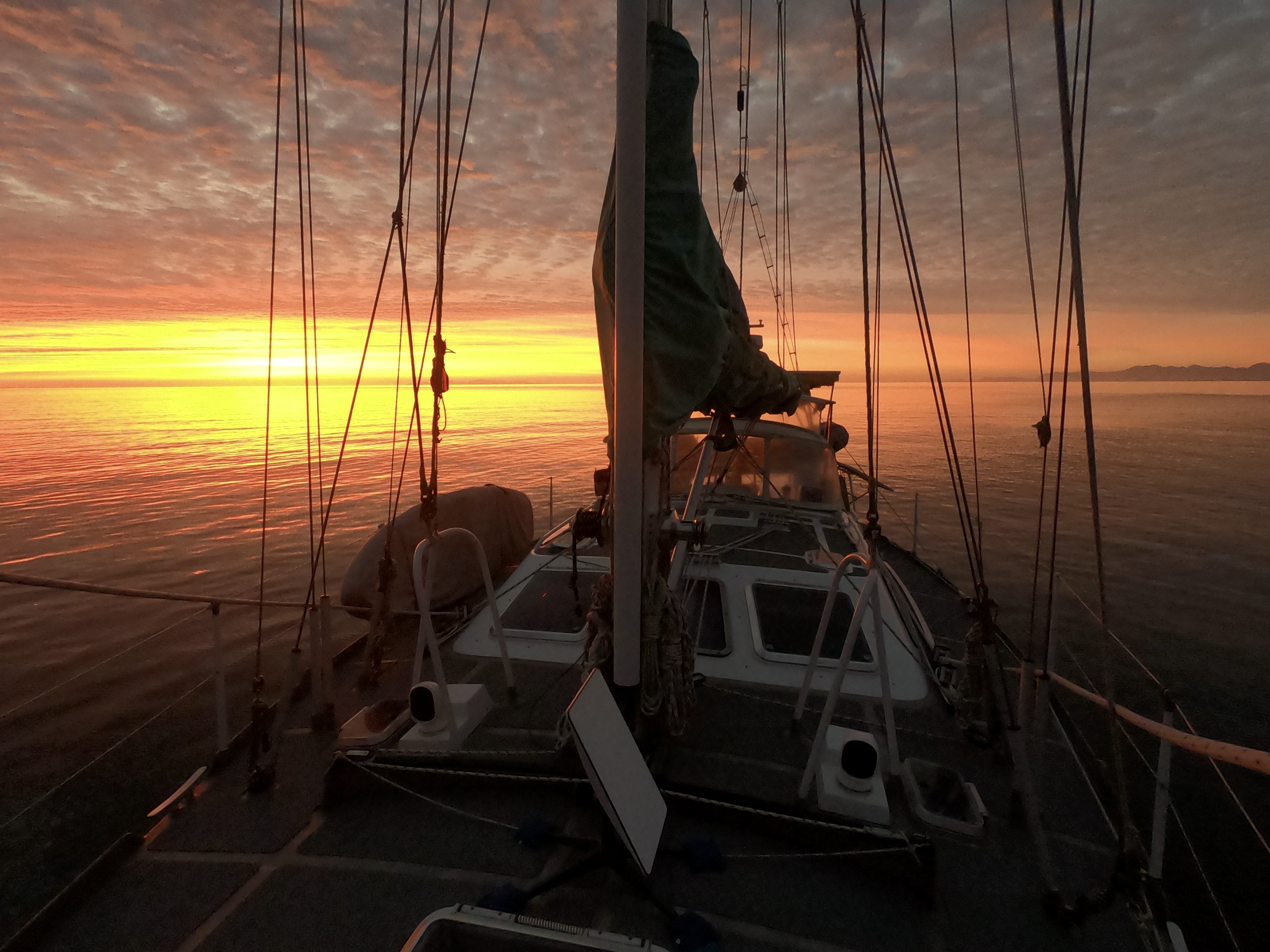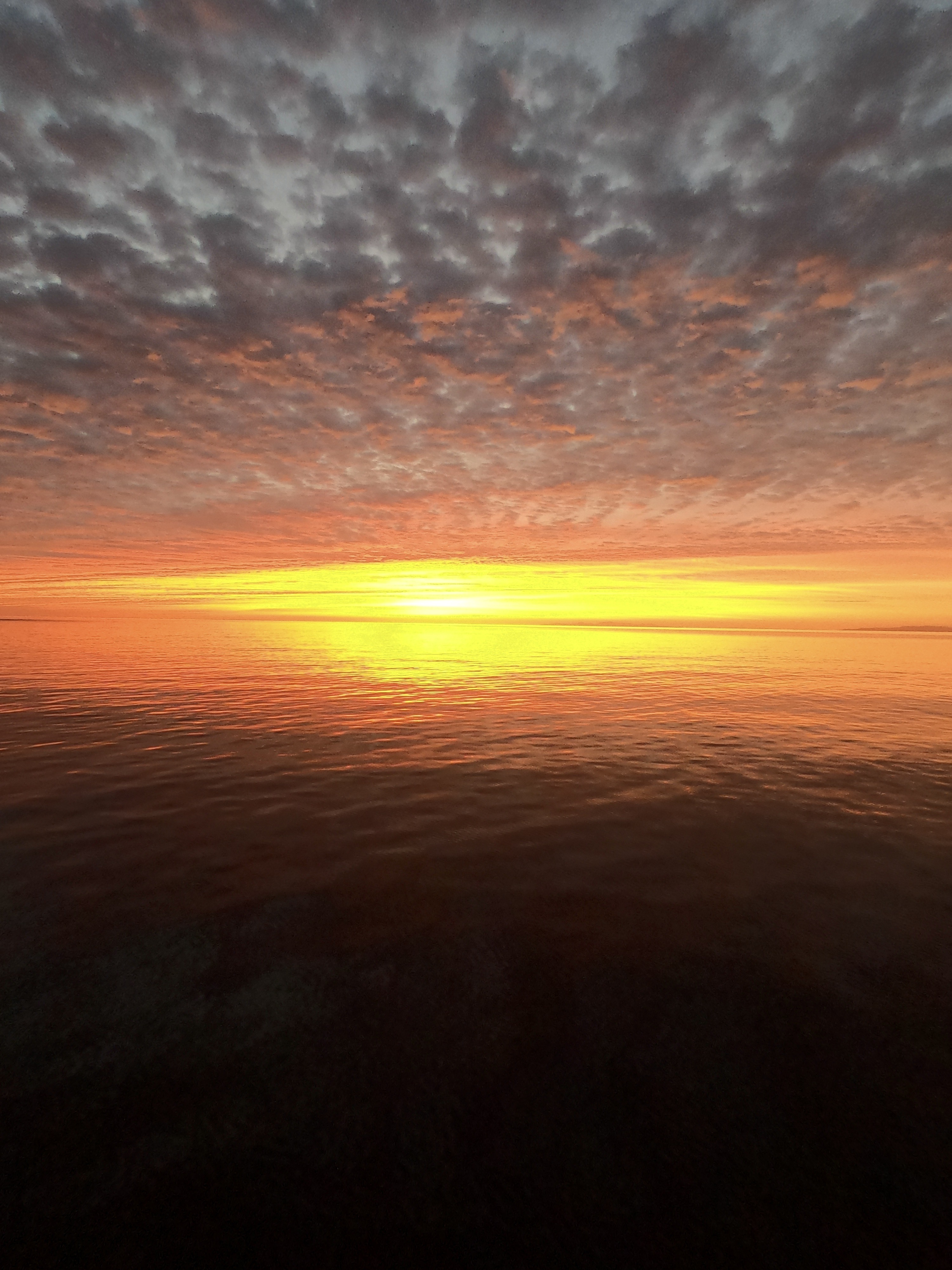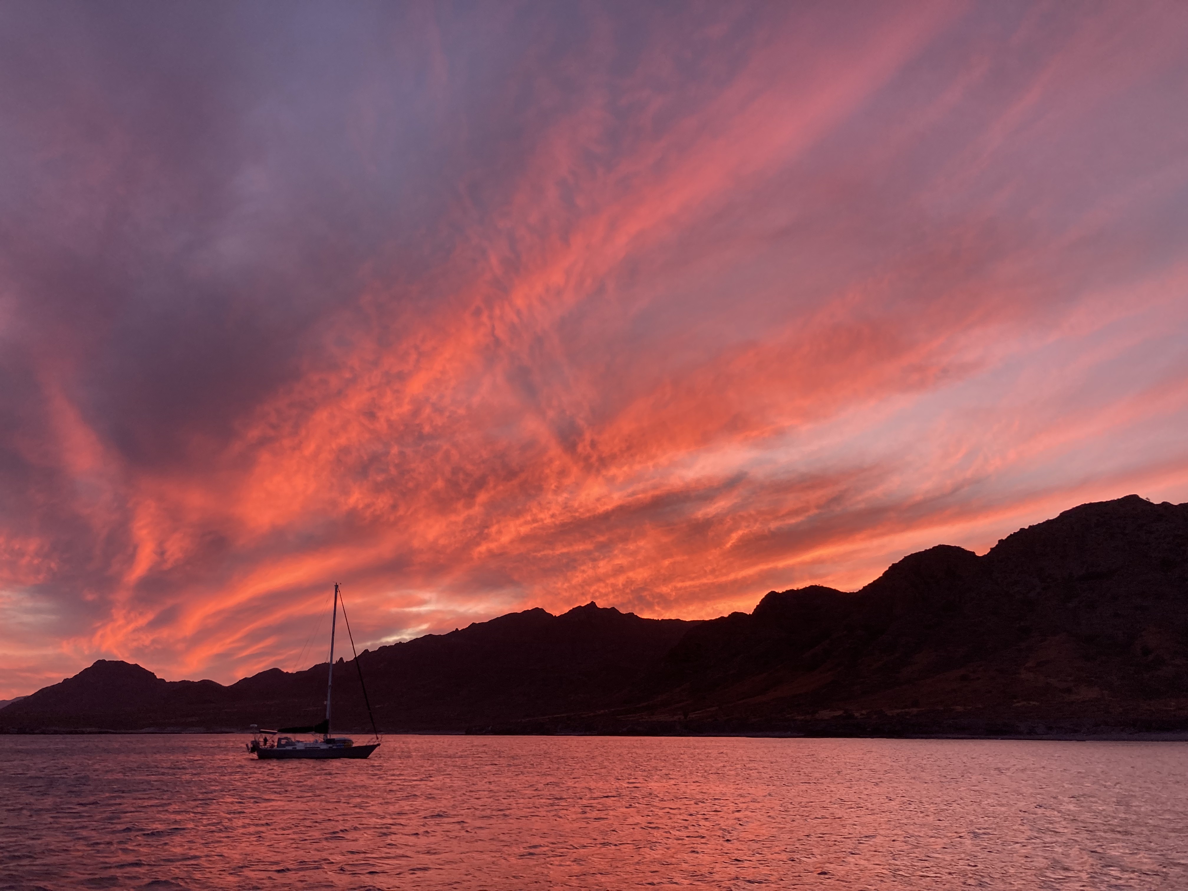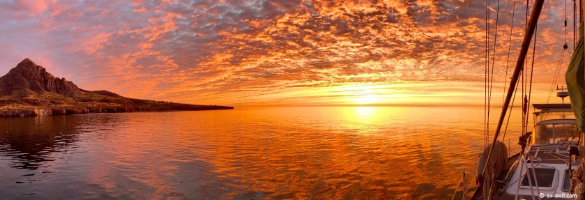 We have witnessed some truly spectacular sunsets and sunrises aboard Exit. It’s impossible to capture the intensity, colors, and sheer impact of something that covers the entire sky in an image.