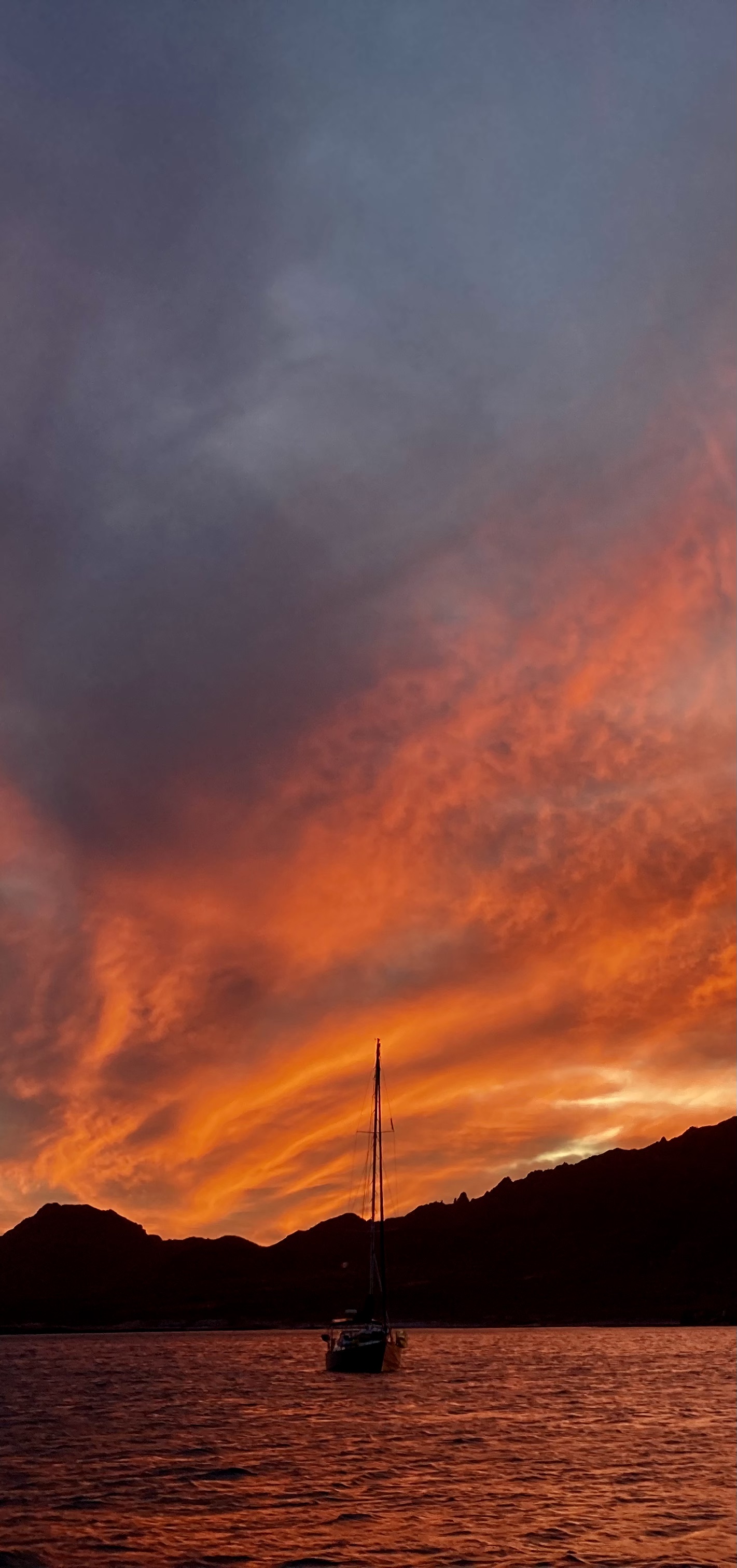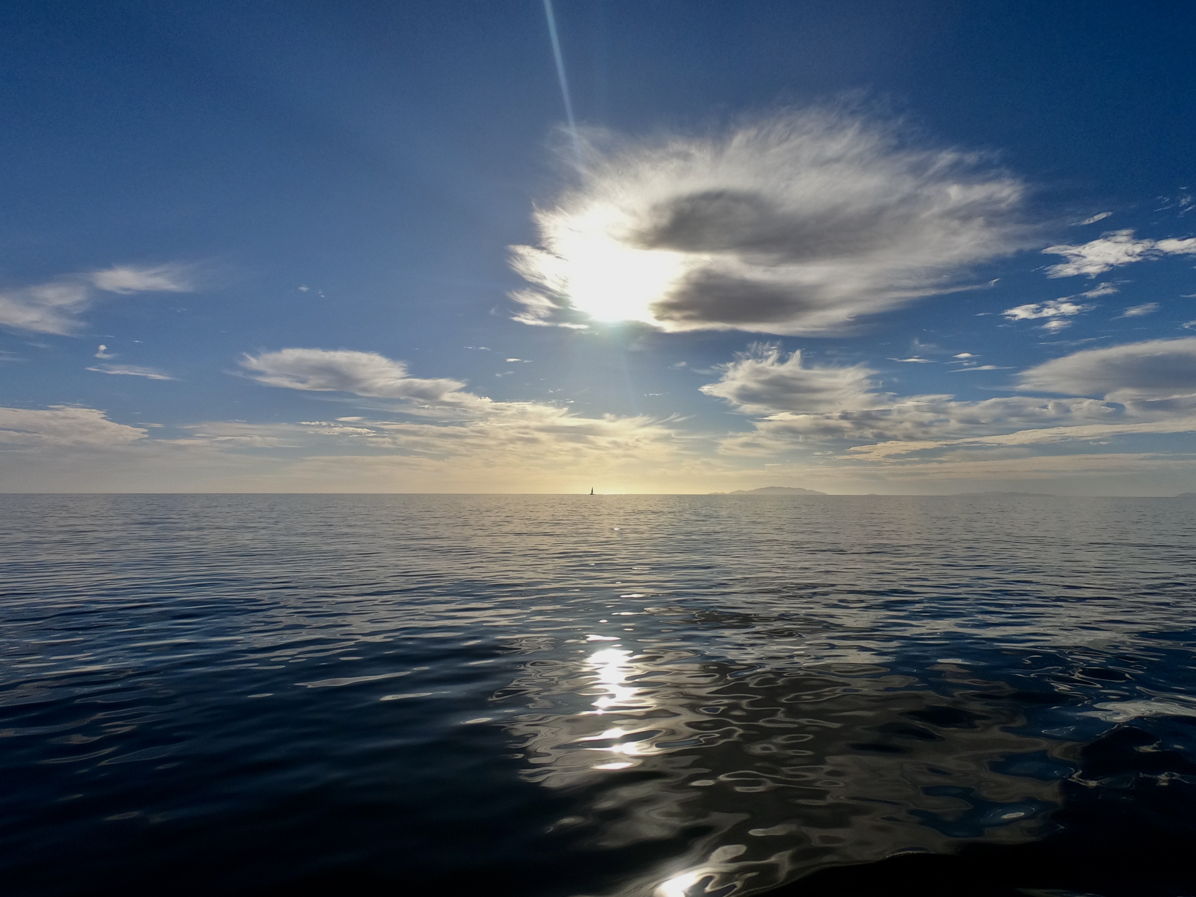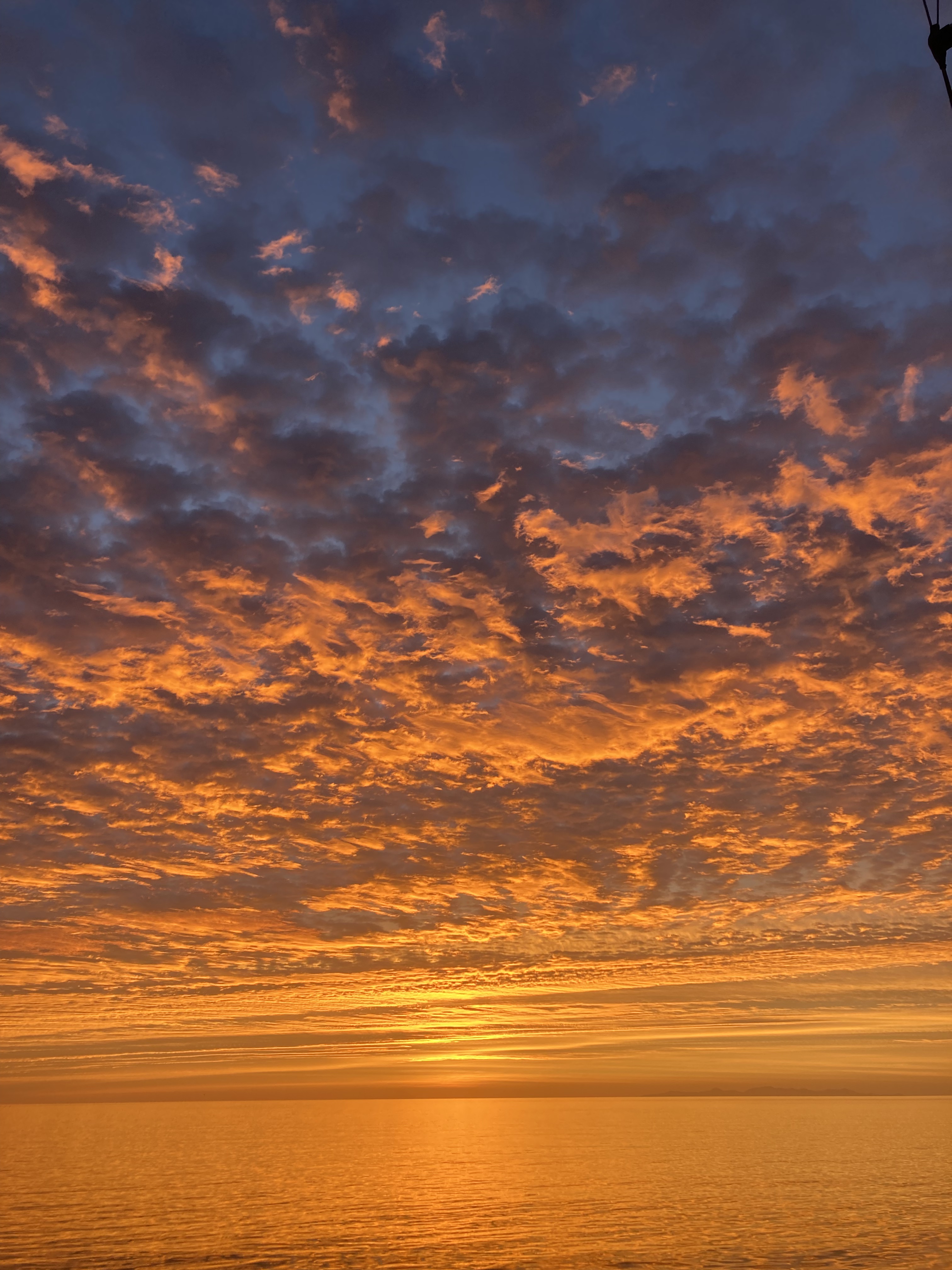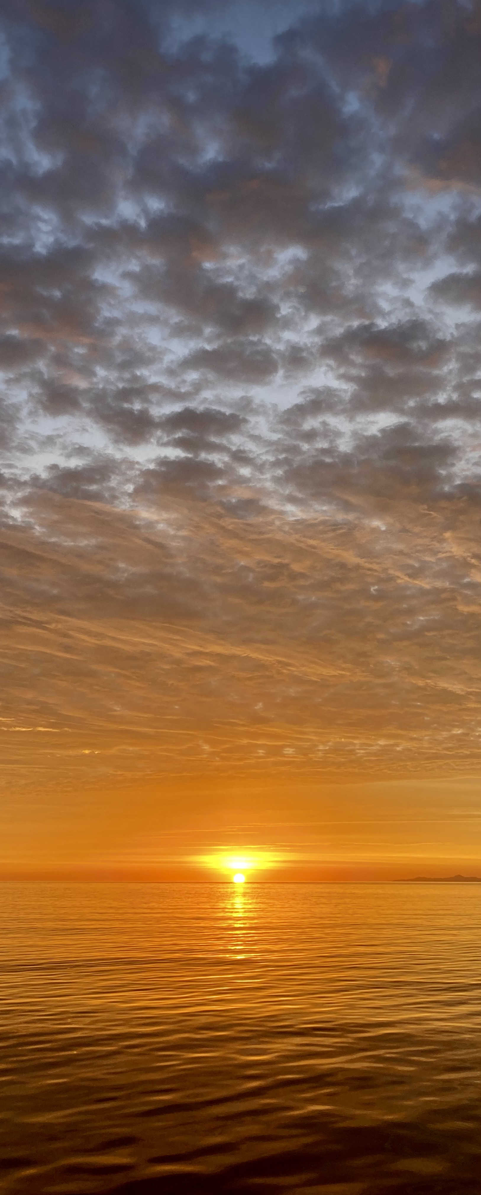 We have witnessed some truly spectacular sunsets and sunrises aboard Exit. It’s impossible to capture the intensity, colors, and sheer impact of something that covers the entire sky in an image.
