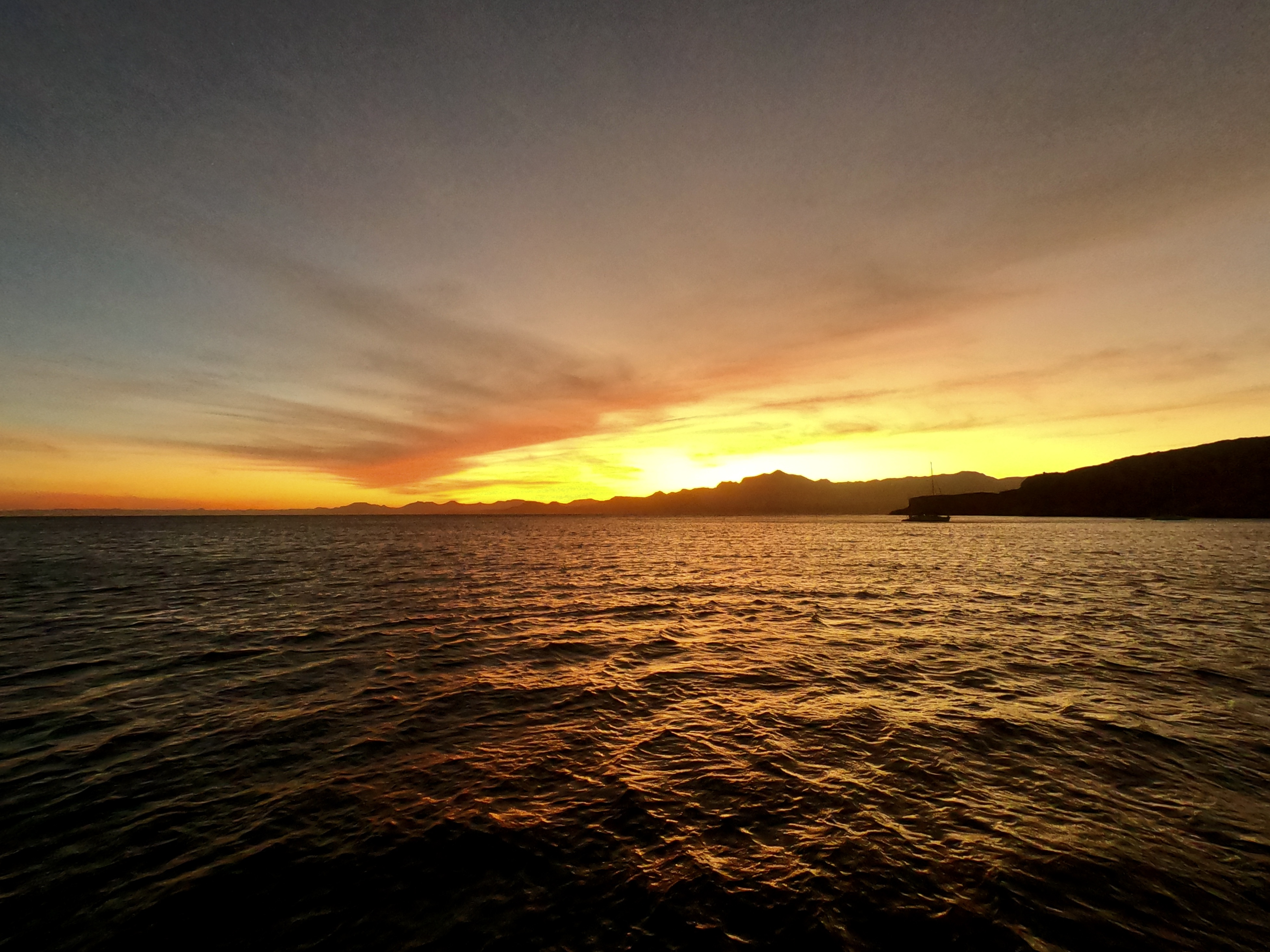 The giant bay on the south side of the island provided tons of space and excellent weather protection from every direction except the southwest. The gentle slope just off the beach provided infinite choices of depth to anchor in, and we could tell we were well dug into nothing but sand when we felt the satisfying tug of the chain as the anchor solidly caught.
