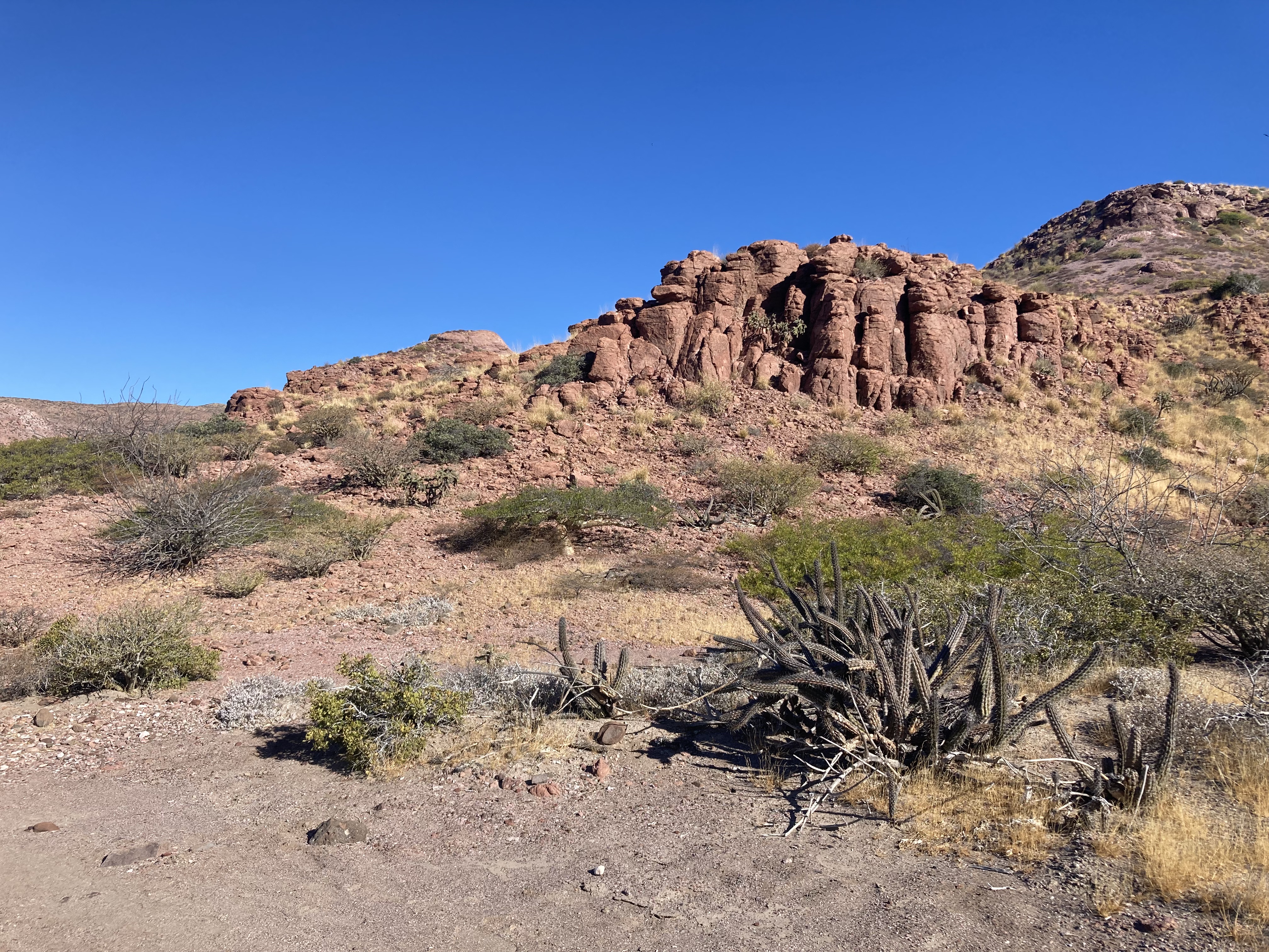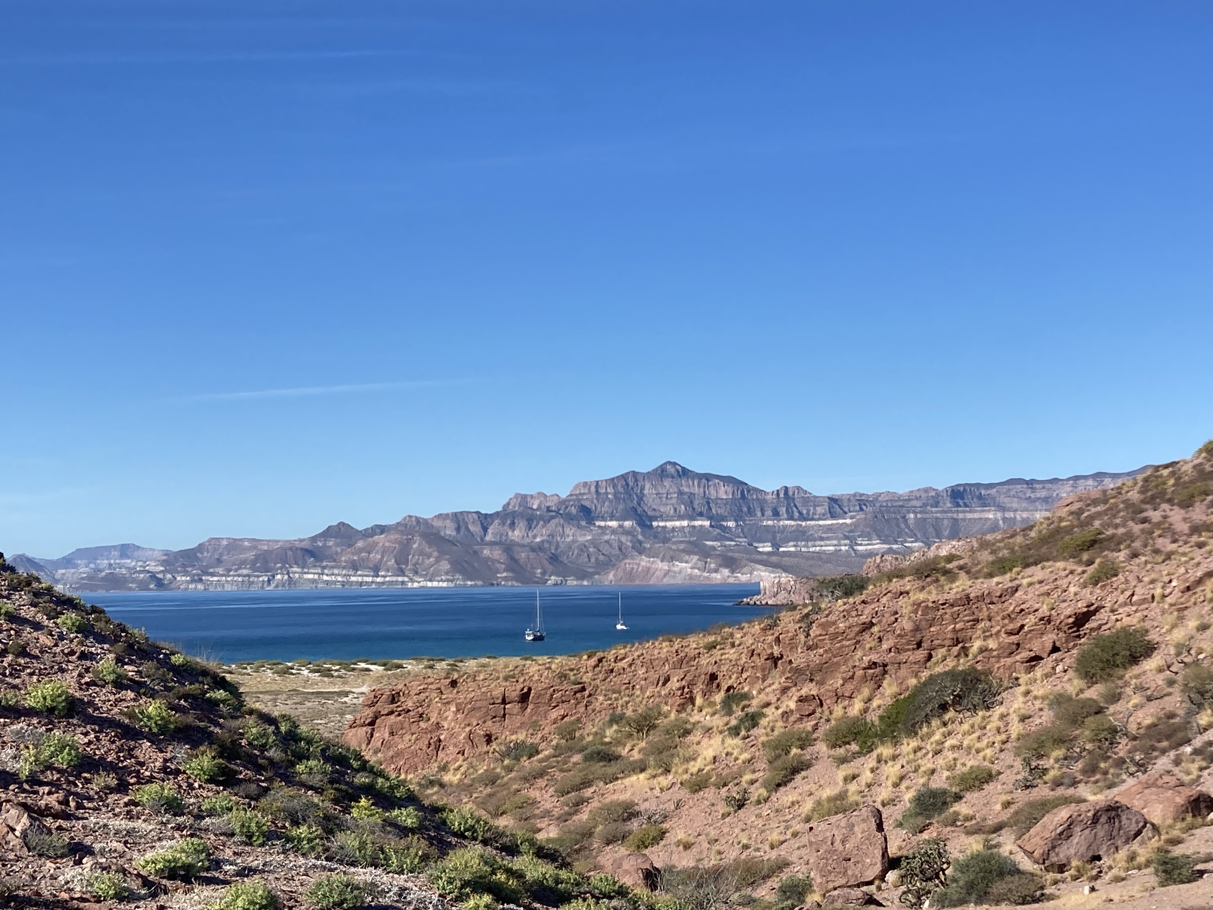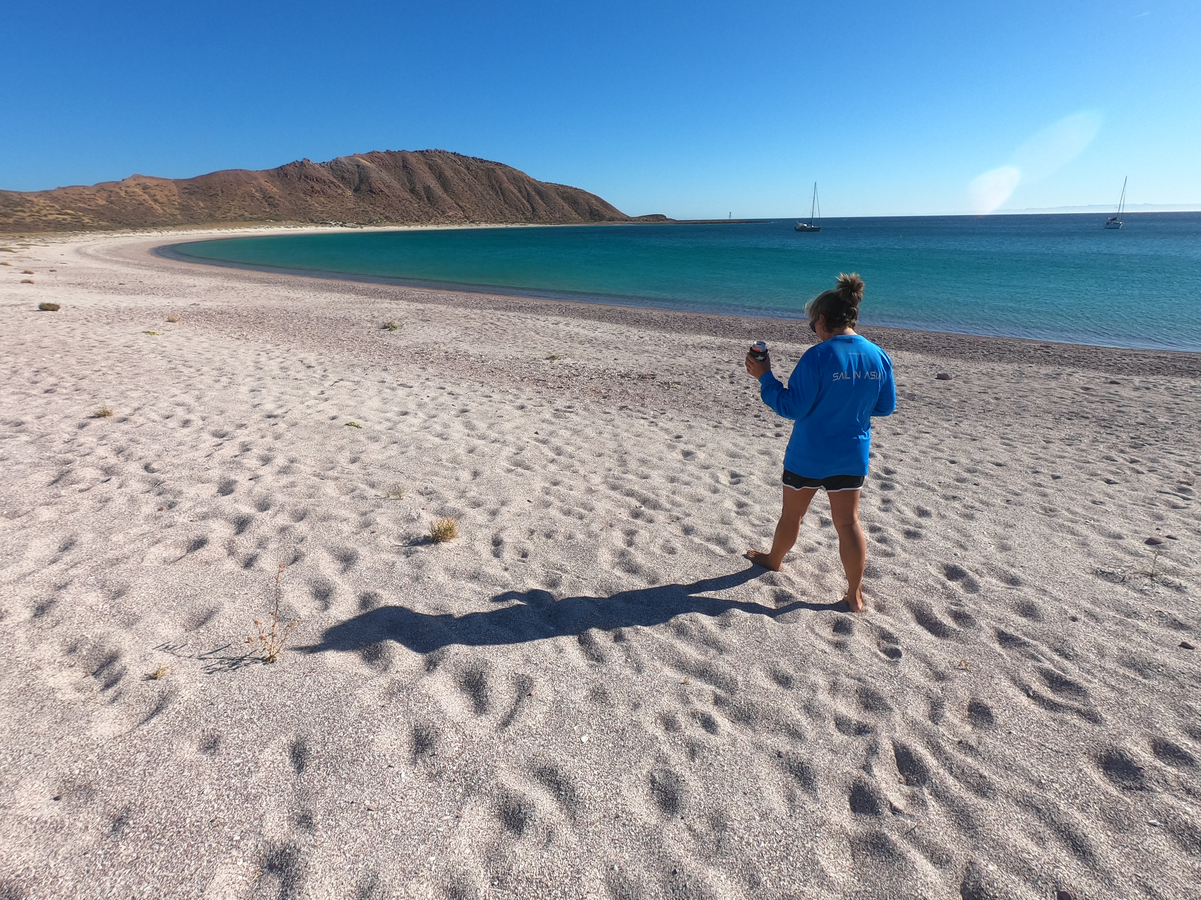 Just beyond the beach lies a large salt flat of parched earth and scrub, separating the anchorage from a bay on the other side of Isla San Francisco.