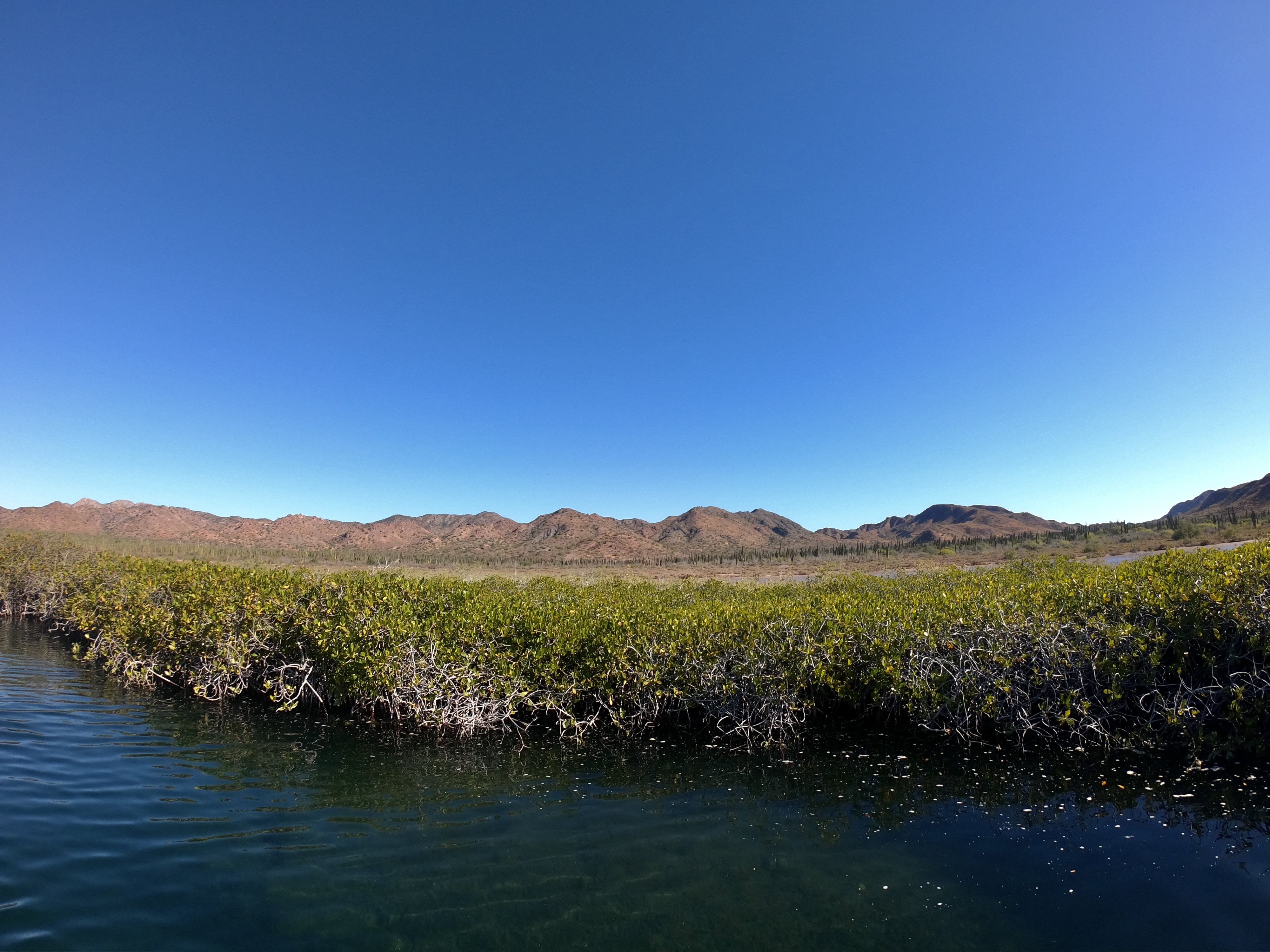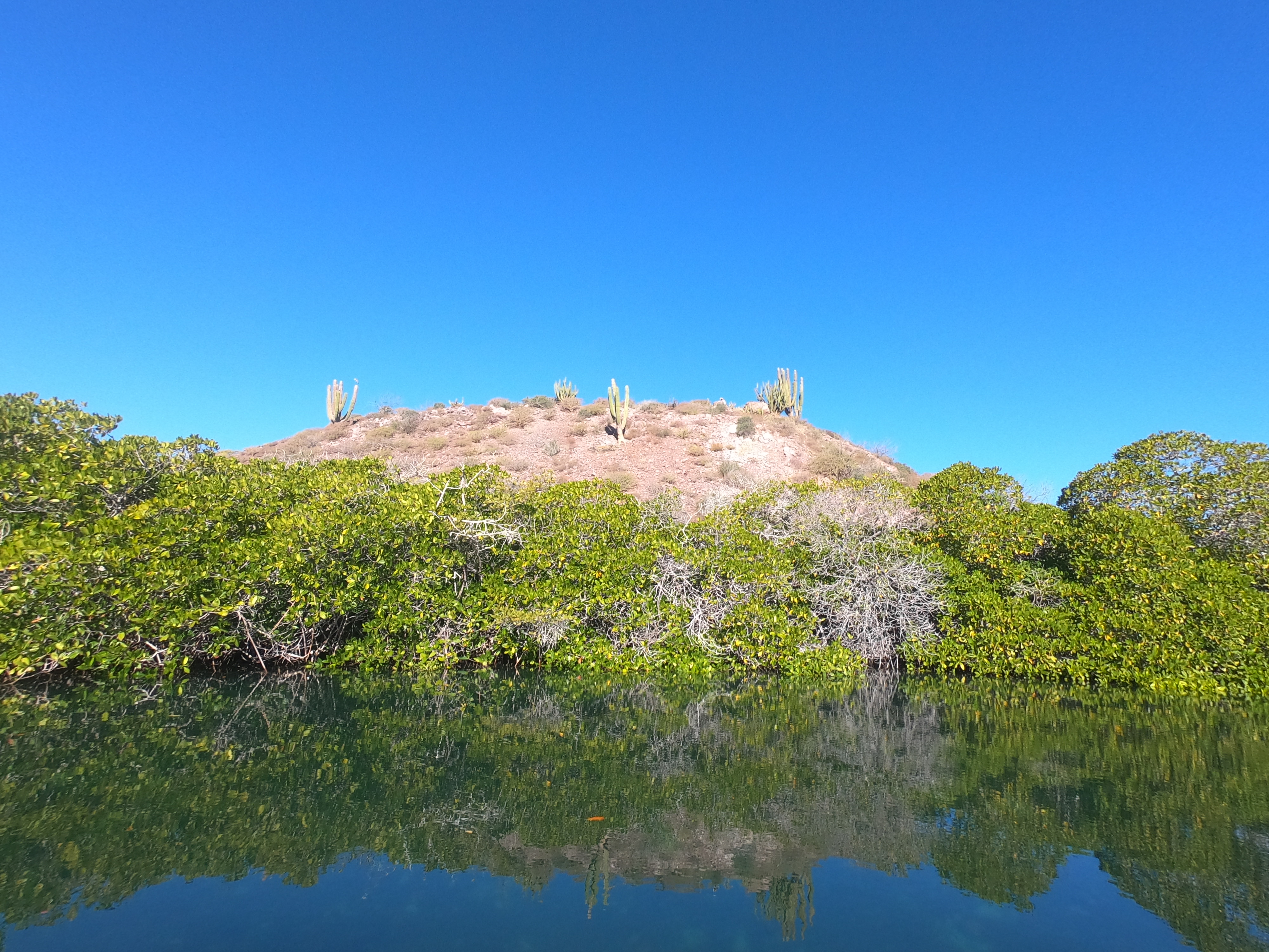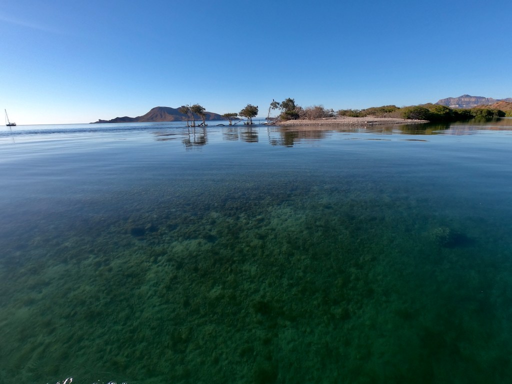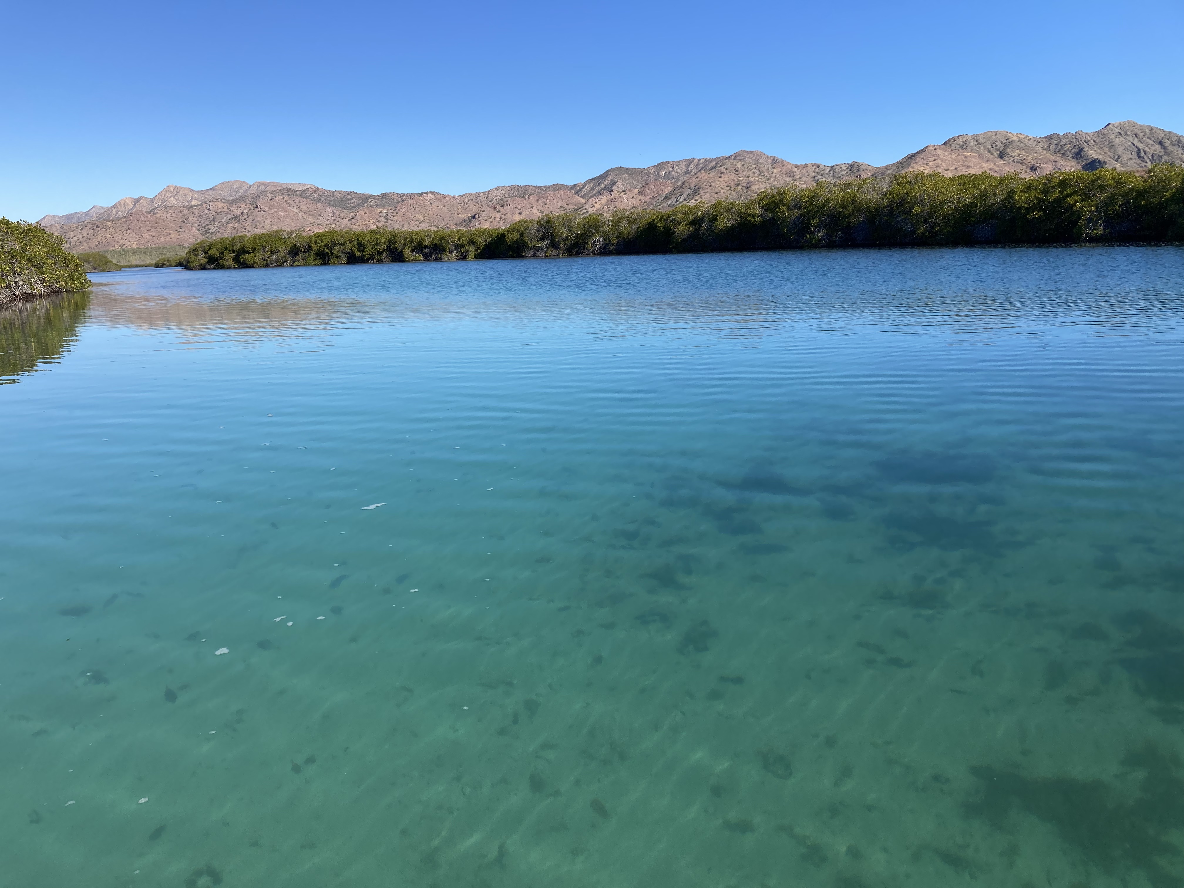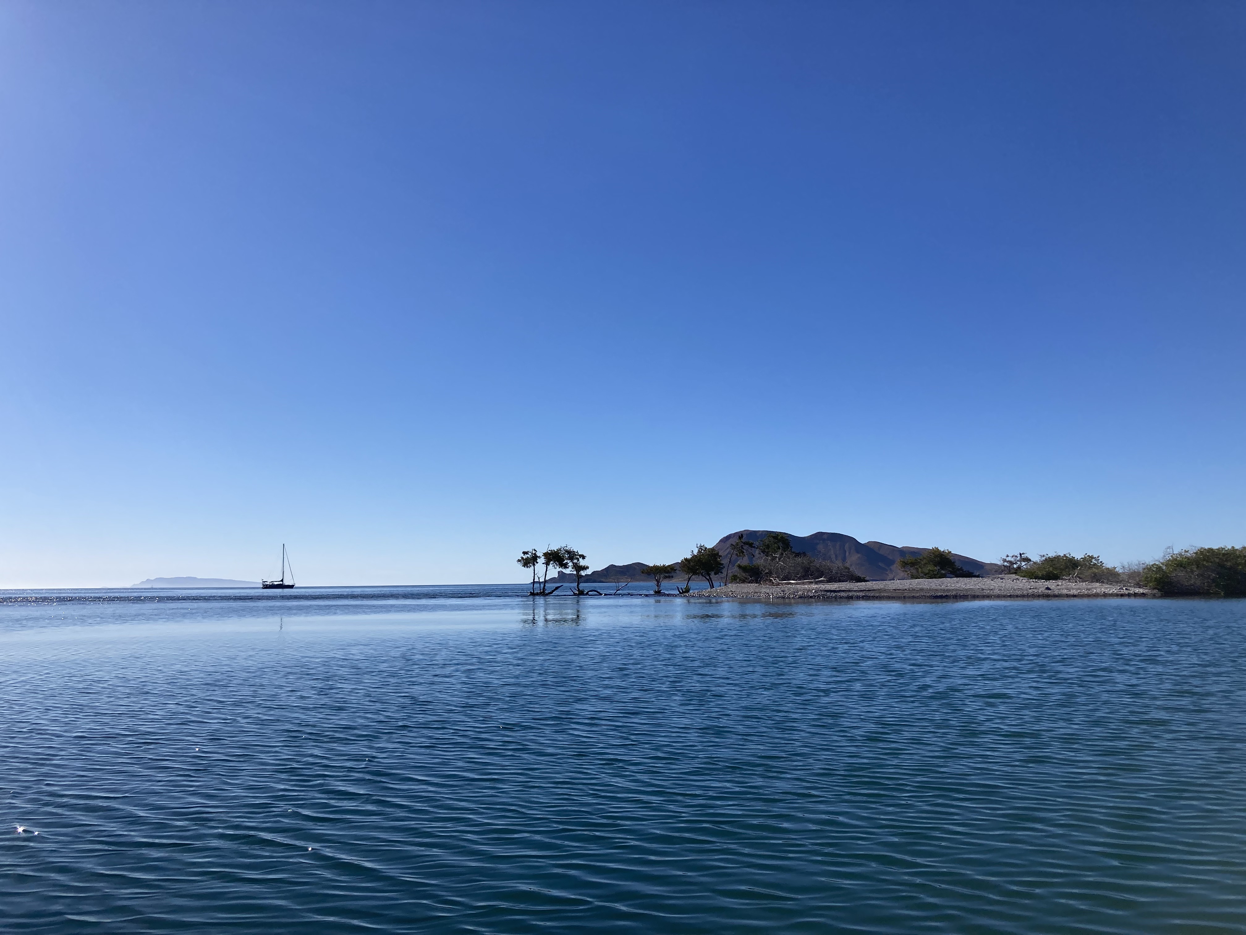 Bahia Amortajada was our stop at the southern tip of Isla San Jose. We hoped to make a dinghy excursion there to access a mangrove lagoon.