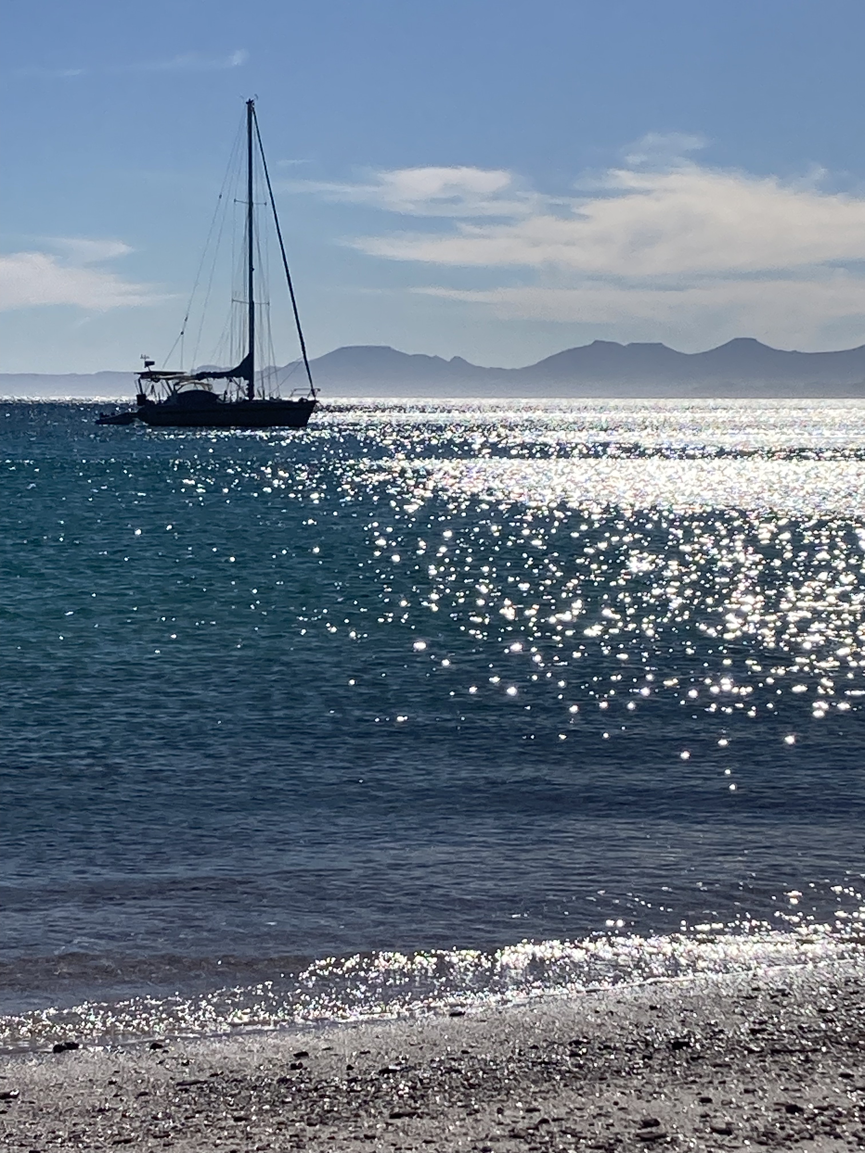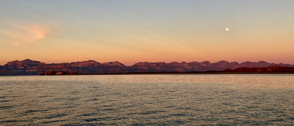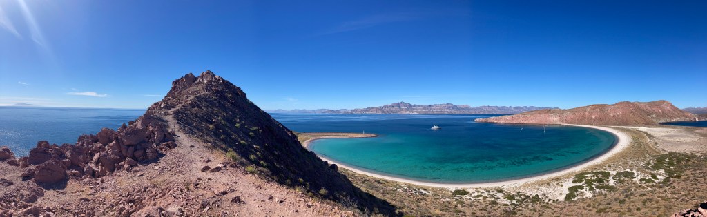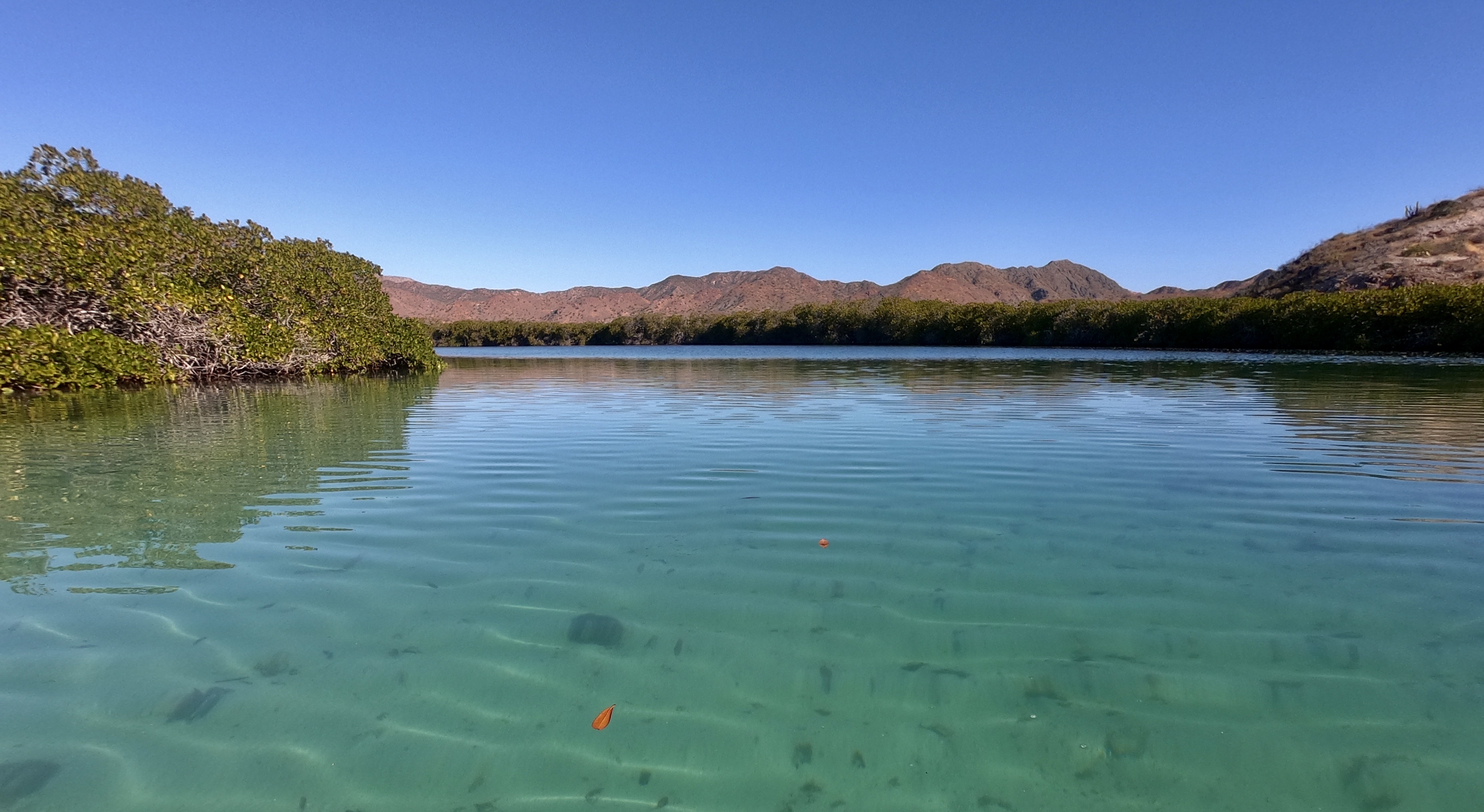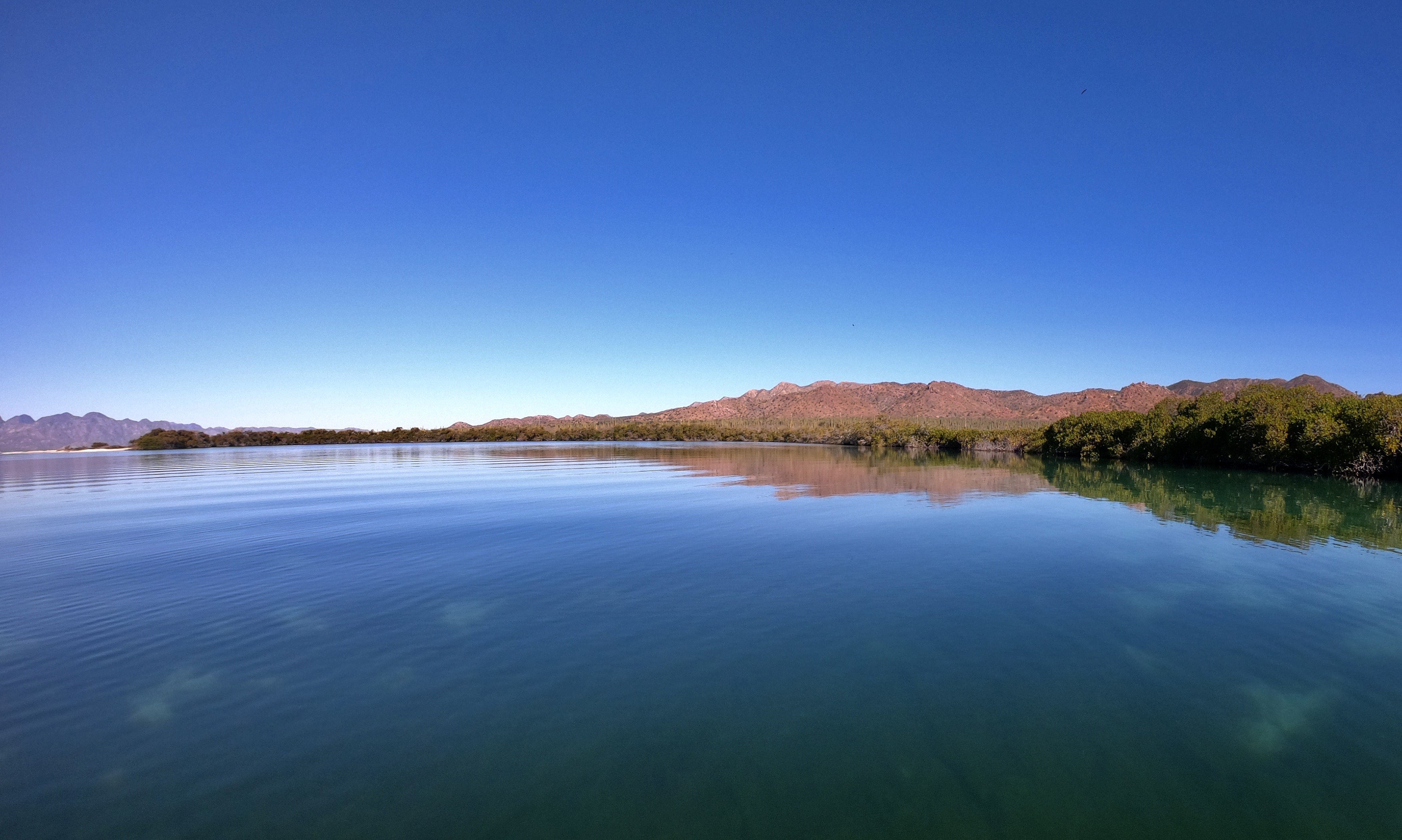Bahia Amortajada was our stop at the southern tip of Isla San Jose. We hoped to make a dinghy excursion there to access a mangrove lagoon.