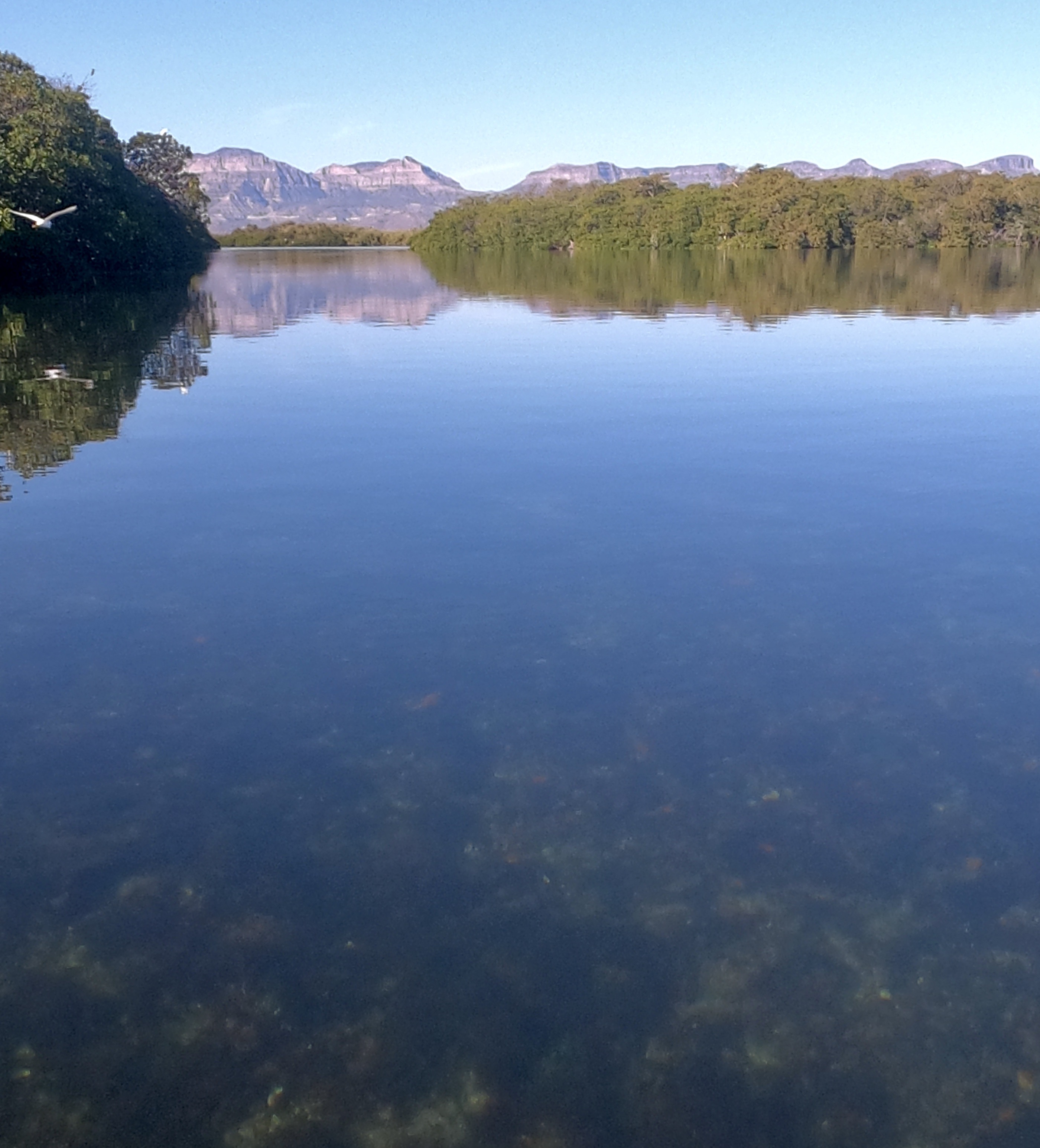 There was only a brief period during the highest tide that afforded enough depth for dinghy access across the rocky bar separating the mangrove system from the outside anchorage area.