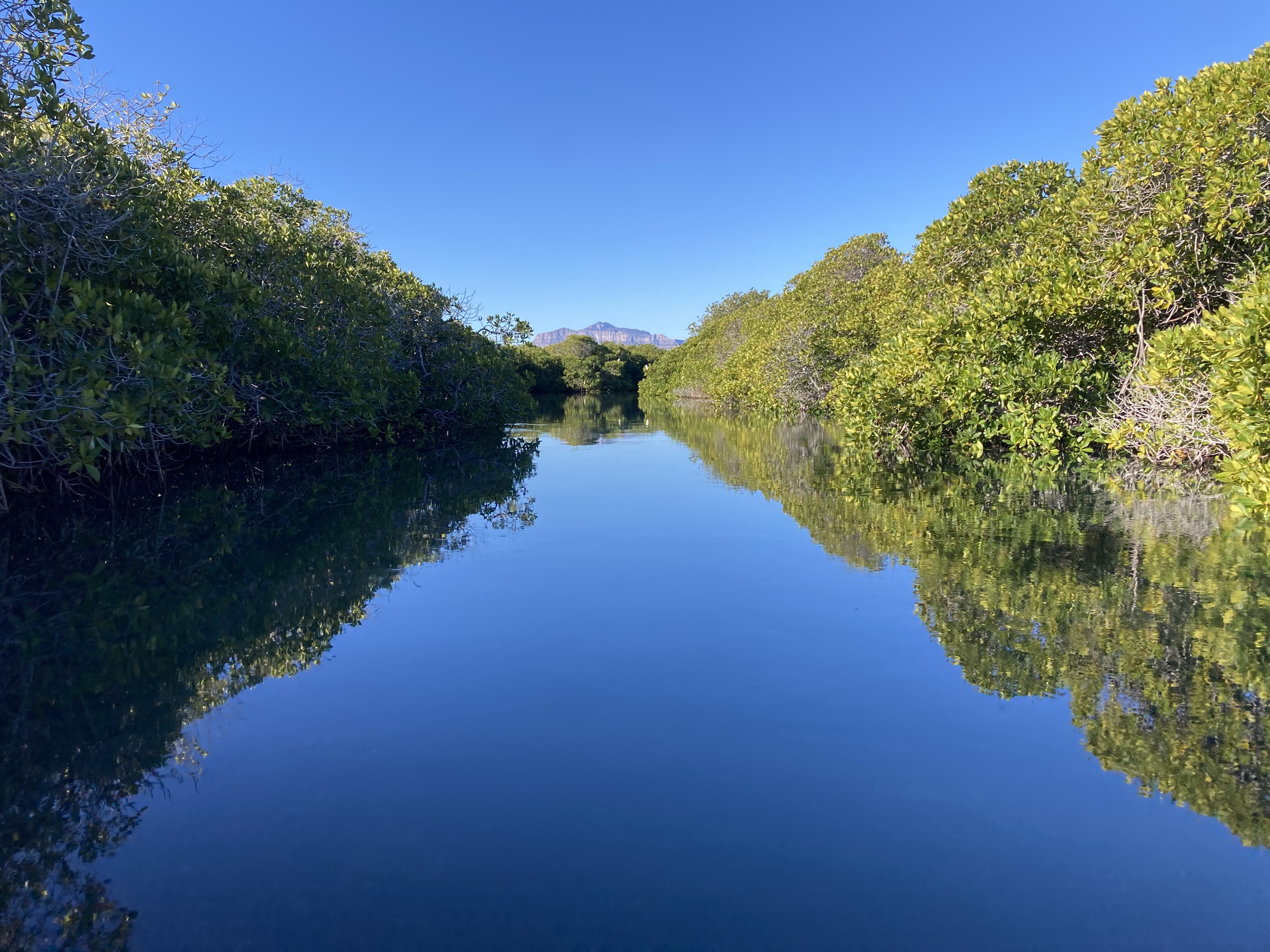 Fortunately, high tide was right around sunrise. With an early start, we could get across the entrance, spend a little while exploring the mangrove, and then get back out without ever getting out of the dinghy.