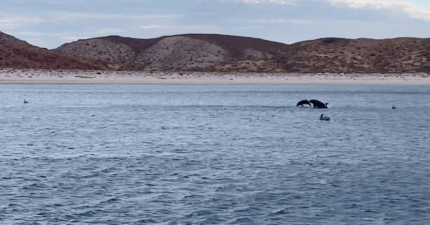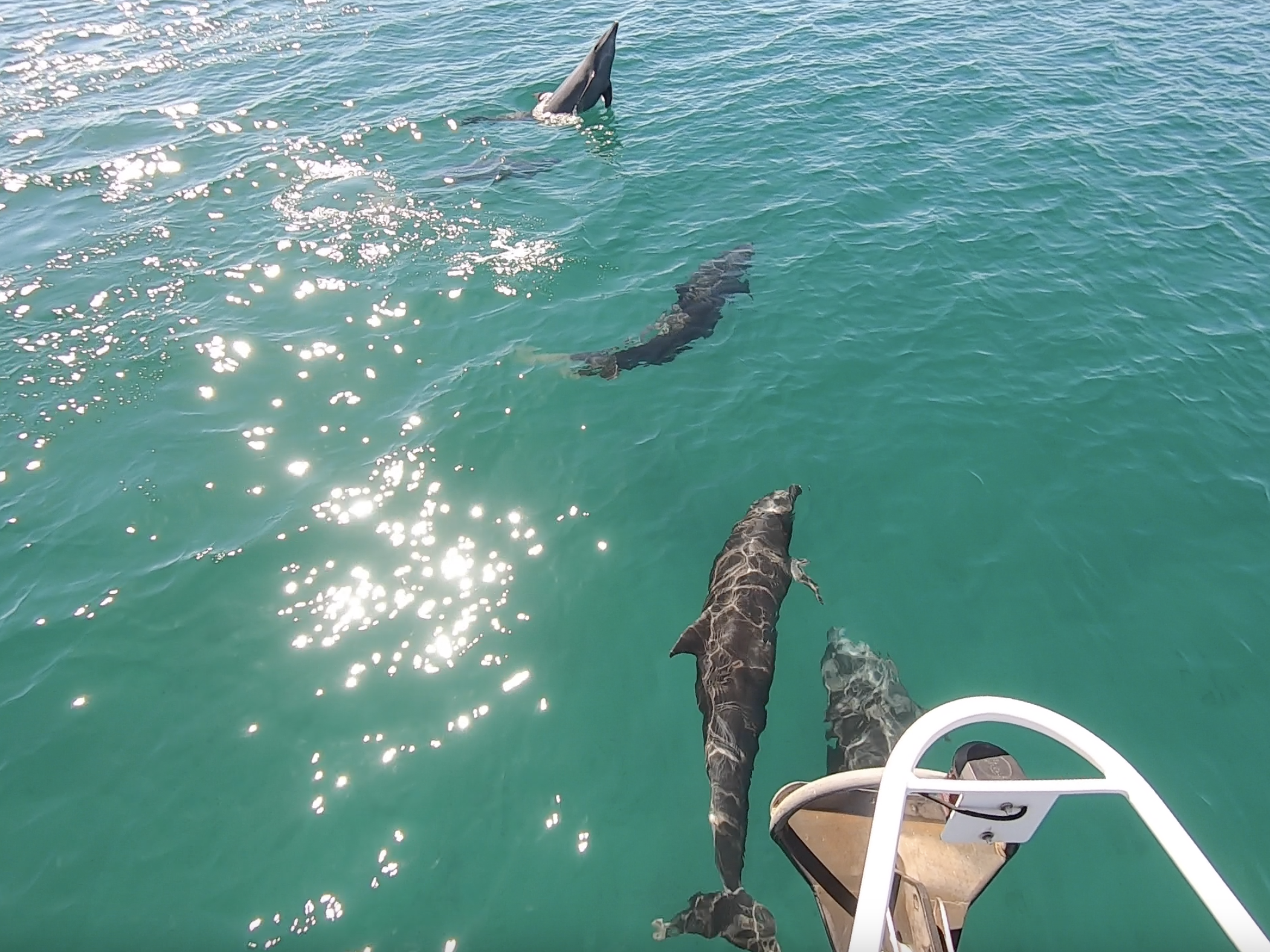 As the wind began to pick up, a group of dolphins visited the anchorage.