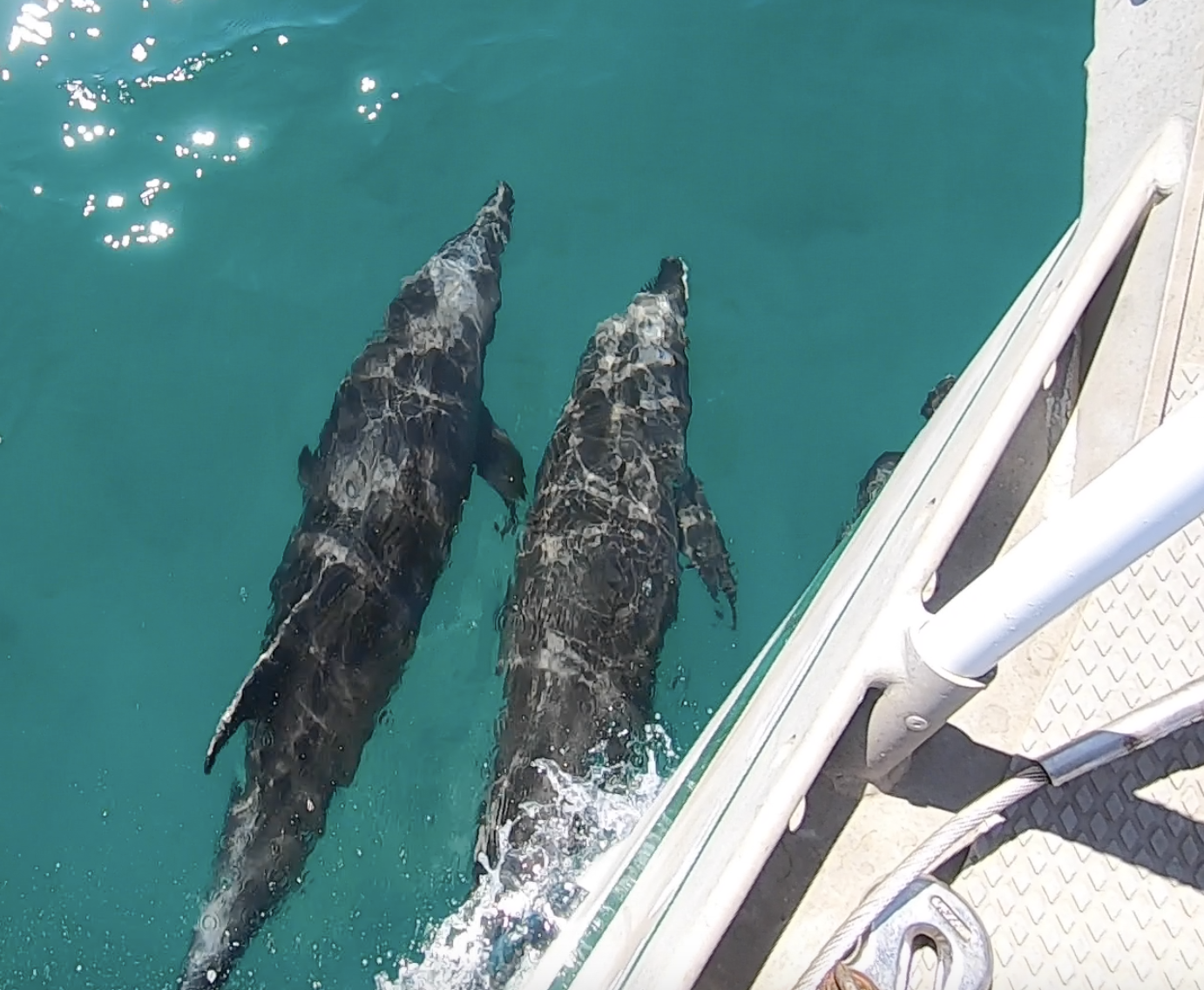 No matter how many times it happens, a visit from dolphins while underway is ALWAYS a magical experience. When the water is exceptionally clear, it makes things even more surreal.
