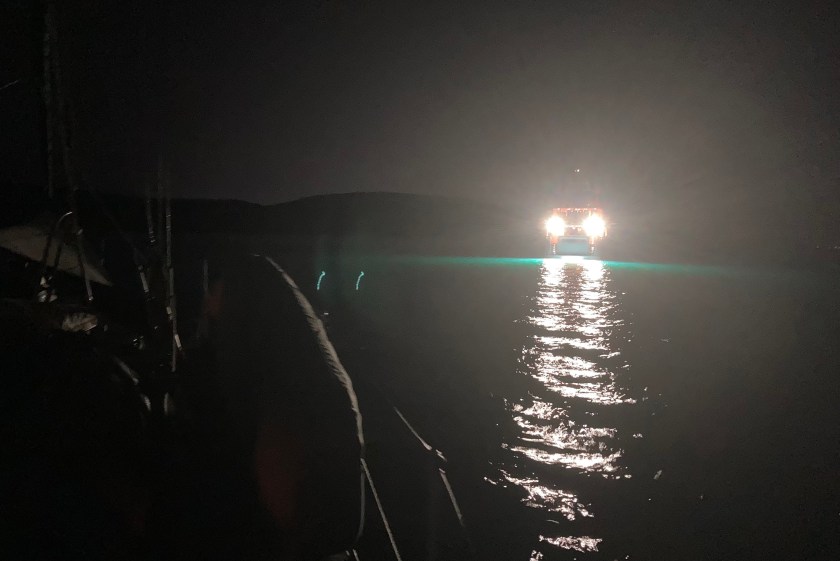 The invasively convoluted and unanticipated situation we suddenly found ourselves in seemed perfectly encapsulated and reflected later that night when a mega-twat anchored directly on top of us in Bahia Falsa after dark and then proceeded to power up its two massive stern deck lights, which pointed directly at us.